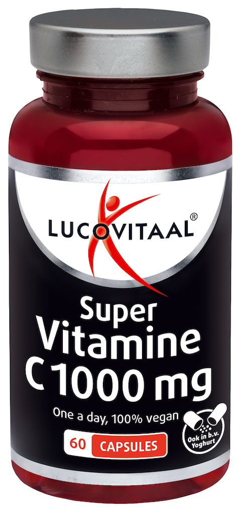 Lucovitaal Super Vitamine C 1000mg Capsules is een voedingssupplement met een hoge dosering vitamine C per capsule. Doordat 1 capsule 1000 mg vitamine C bevat hoeft u slechts 1 capsule per dag in te nemen! Daarnaast is de capsule makkelijk slikbaar en kan kan tevens
