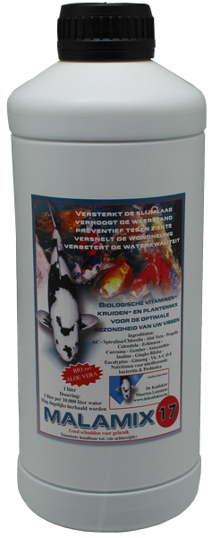 De Malamix17 is het product dat de Dierenarts Maarten Lammens vanuit zijn eigen ervaring heeft ontwikkeld. Dagelijks kwamen er in zijn praktijk vissen met een slechte slijmlaag. Denk hierbij aan te weinig slijm, te dikke slijm en een slechte consistentie. Wanneer deze slijmlaag te weinig afweerstoffen bevat, is de kans veel groter dat uw vis ziek kan worden.