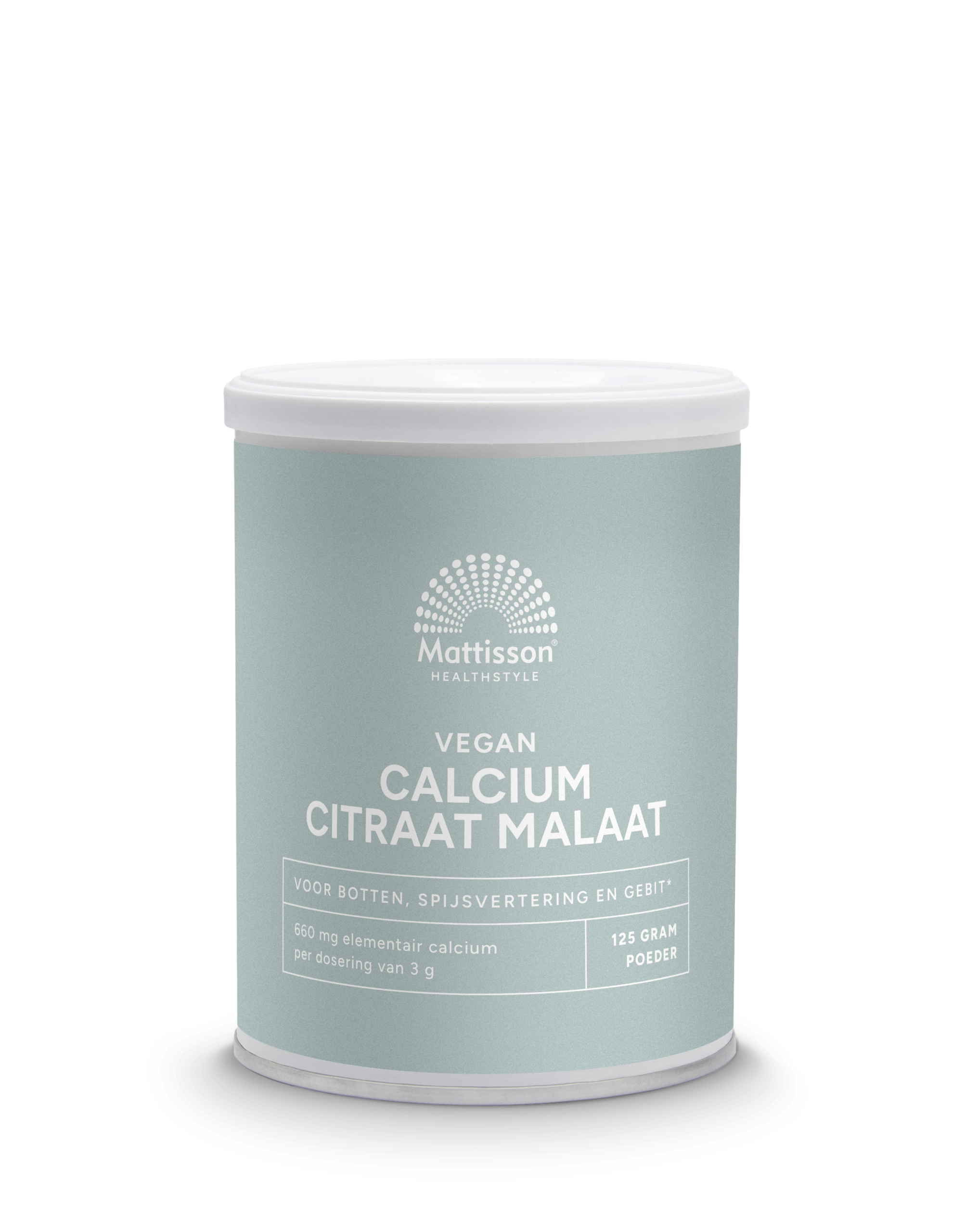 Mattisson HealthStyle Calcium Citraat Malaat (125 gram) is een vegan voedingssupplement. Het bevat calcium in de organische vormen citraat en malaat, die zeer efficiënter door het lichaam worden opgenomen. Dit poeder is geschikt voor volwassenen vanaf 18 jaar en bevat 3000