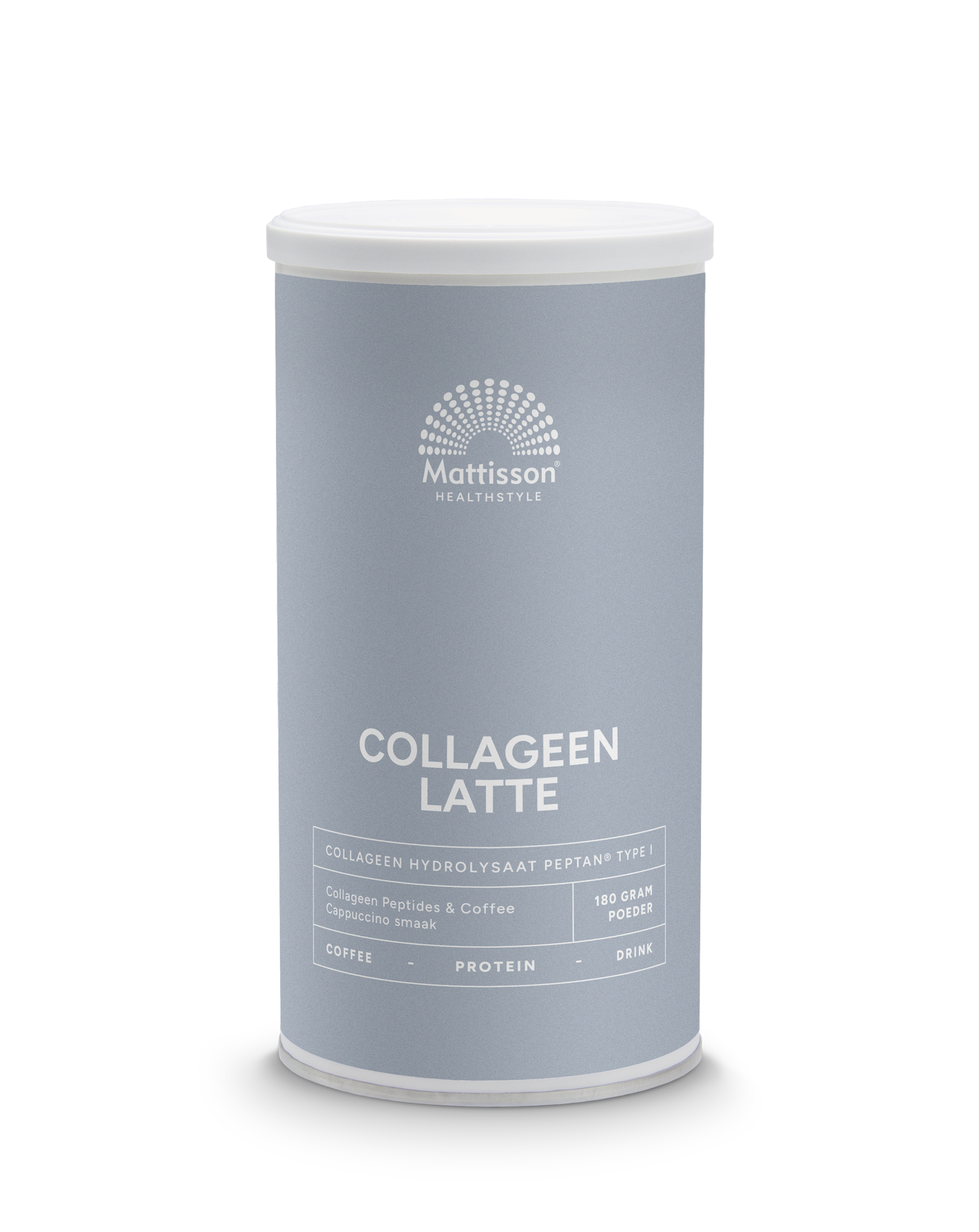 Mattisson HealthStyle Collageen Latte Collagen Peptides & Coffee bevat een combinatie van Collageen Type l, MCT olie, instant koffie en heeft door toevoeging van een cappuccino aroma en stevia een aangename smaak. De Latte is erg eenvoudig te bereiden. U lost een eetlepel