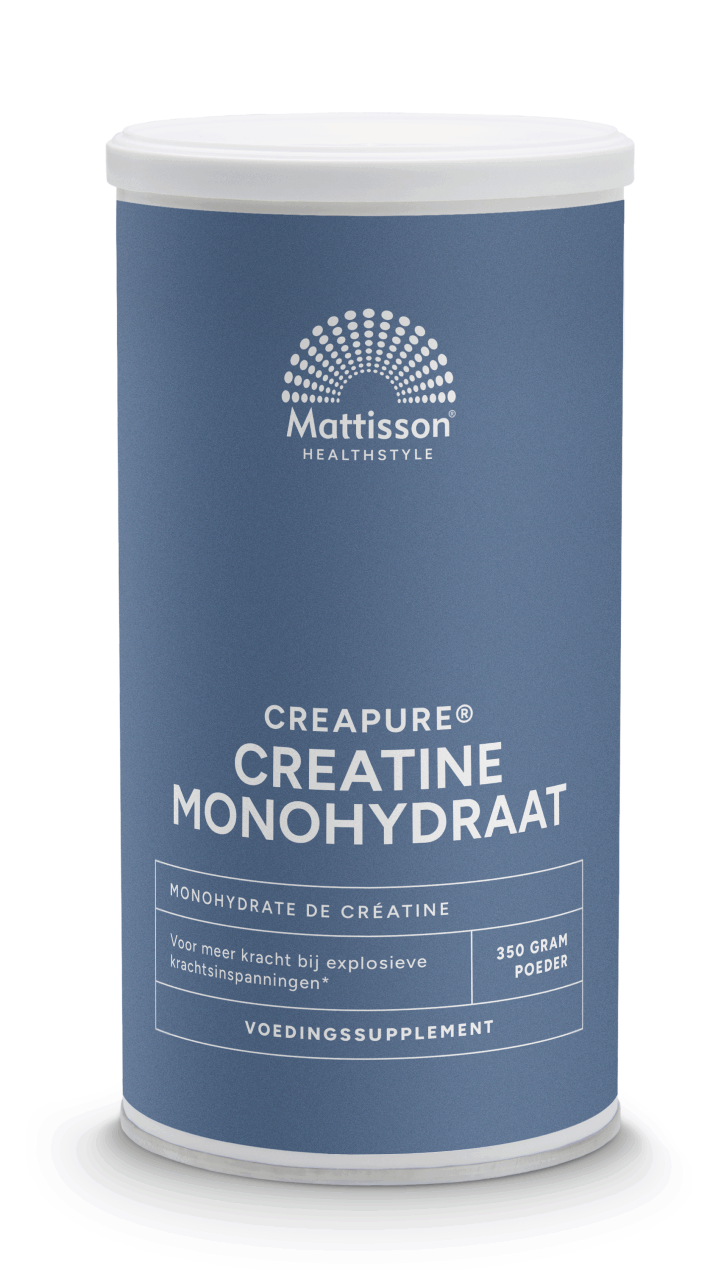 Mattisson HealthStyle Creatine Monohydraat Poeder (350 gram) – Creatine ondersteunt spieropbouw en spierkracht bij explosieve krachtsinspanningen. Daarnaast kan dagelijks gebruik het effect van training voor spierkracht versterken bij mensen boven 55 jaar. Mattisson