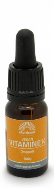 Mattisson Healthstyle Vitamine K Baby Vegan Druppels is en voedingssupplement speciaal ontwikkelnd voor baby's van 8 dagen tot 3 maanden oud. Het is erg belangrijk om naast borstvoeding, flesvoeding en de onvoorwaardelijke liefde die pasgeborenen krijgen extra vitamine K