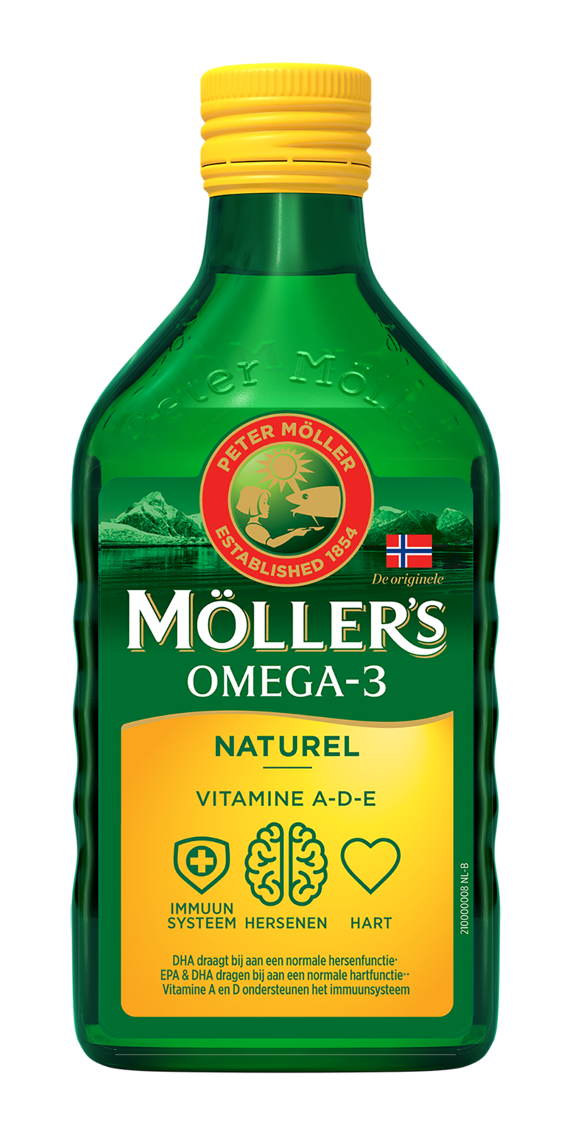 Mollers Omega-3 Naturel is een hoogwaardige Noorse levertraan. Het is rijk aan natuurlijke omega-3 vetzuren, vitamine A, D en E. Het wordt gemaakt van 100% wilde Arctische kabeljauw, duurzaam gevangen bij Lofoten in Noorwegen. De visolie heeft een lage oxidatiewaarde wat