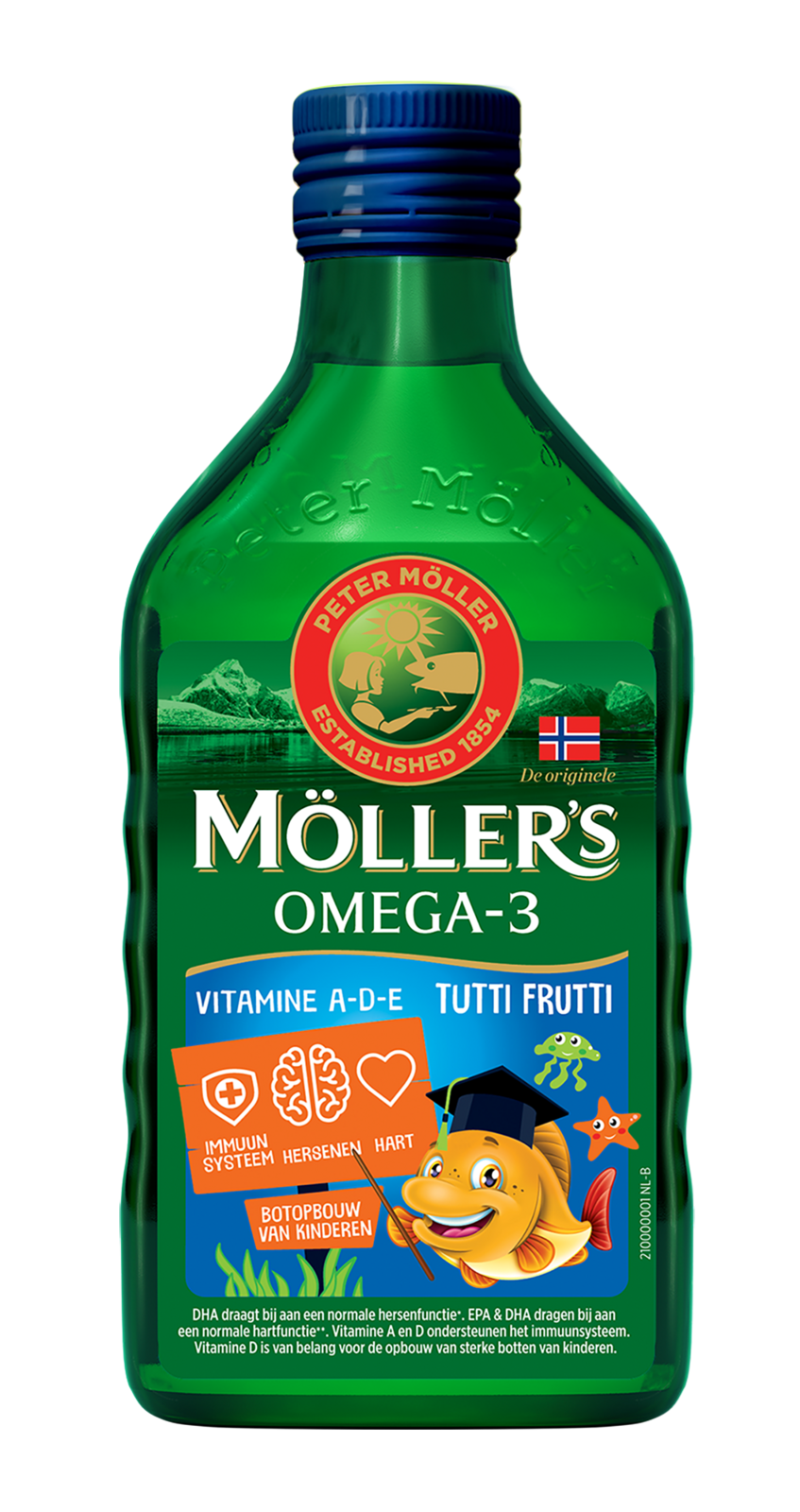 Mollers Omega-3 Tutti Frutti Levertraan is een hoogwaardige Noorse levertraan. Het is rijk aan natuurlijke omega-3 vetzuren, vitamine A, D en E. Het wordt gemaakt van 100% wilde Arctische kabeljauw, duurzaam gevangen bij Lofoten in Noorwegen. De visolie heeft een lage