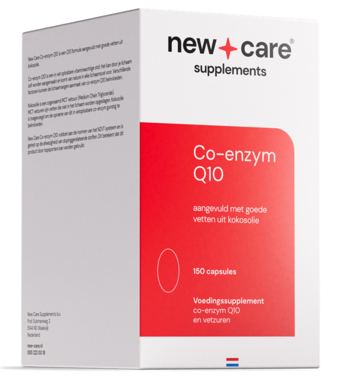 New Care Co-enzym Q10 Capsules (150 stuks) bevatten een uitgebalanceerde combinatie van Q10 en gezonde vetten uit kokosolie. Co-enzym Q10 is een vetoplosbare, vitamine-achtige stof die het lichaam zelf aanmaakt en die van nature in elke lichaamscel voorkomt. De toegevoegde