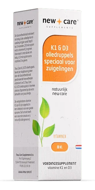 New Care K1 D3 Oliedruppels zijn speciaal ontwikkeld om te voldoen aan de aanbevelingen van de Gezondheidsraad voor zuigelingen die volledig borstvoeding krijgen. De Gezondheidsraad adviseert om baby's vanaf dag 8 tot 3 maanden dagelijks 150 microgram extra vitamine K1 en 10
