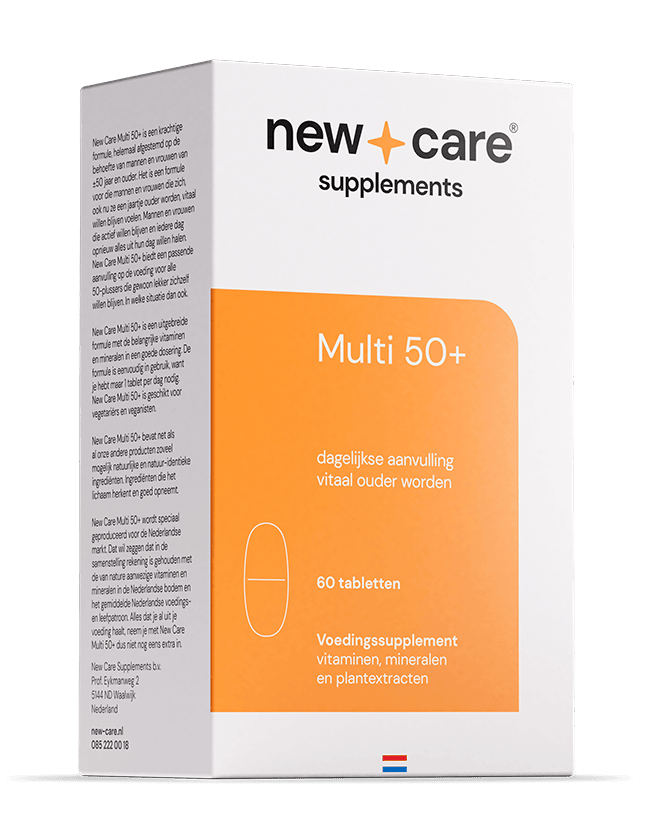 New Care Multi 50+ Tabletten (60 stuks) zijn speciaal ontwikkeld als dagelijkse aanvulling voor mannen en vrouwen van ongeveer 50 jaar en ouder. Deze krachtige formule ondersteunt vitaal ouder worden en is bedoeld voor iedereen die zich ook op latere leeftijd energiek en