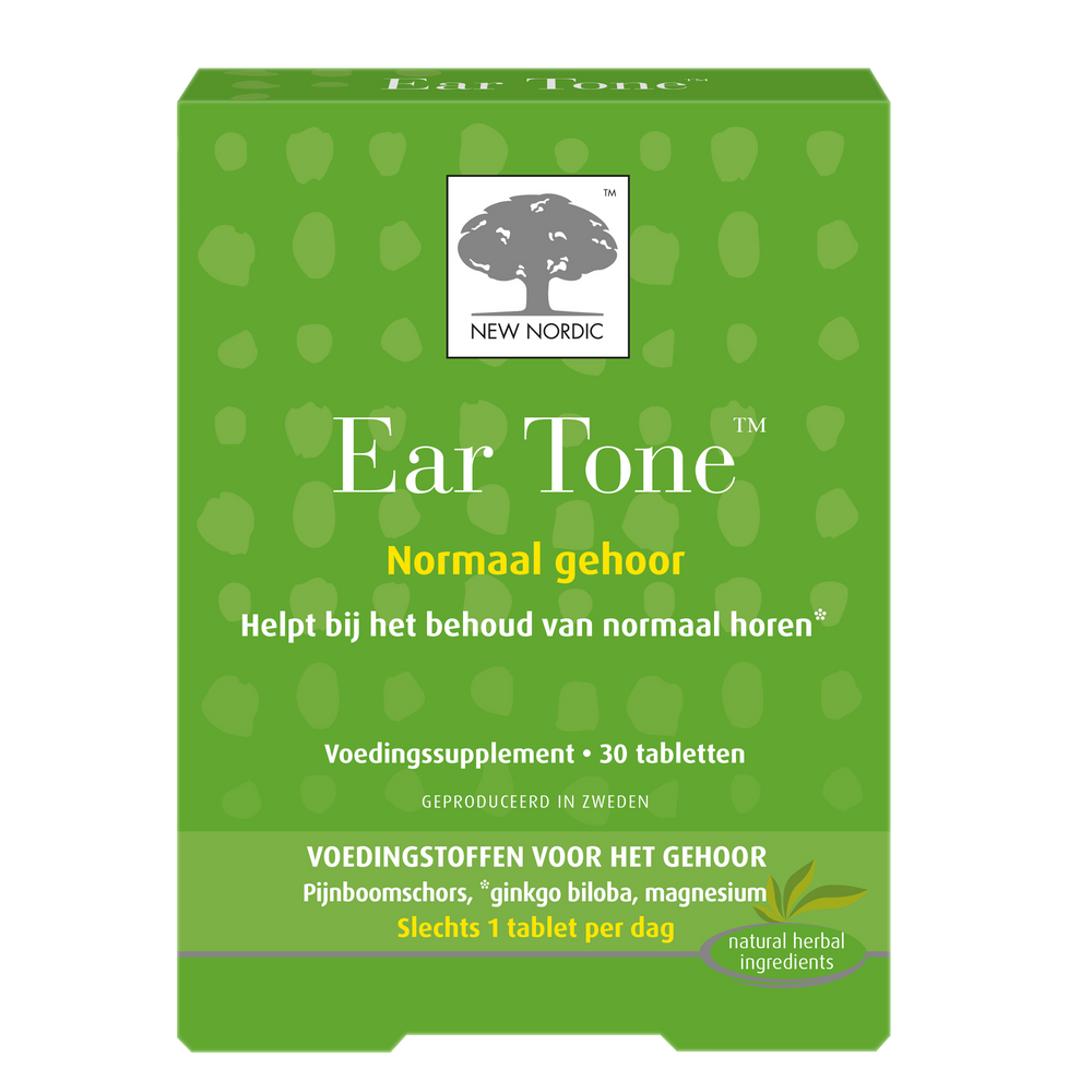 New Nordic Ear Tone Tabletten helpt bij het behoud van normaal horen*. Horen is het vermogen om geluid waar te nemen via trillingen in het oor. Deze trillingen worden met zenuwprikkels verstuurd naar de hersenen. Als het gehoor om wat voor reden dan ook achteruit gaat, kan
