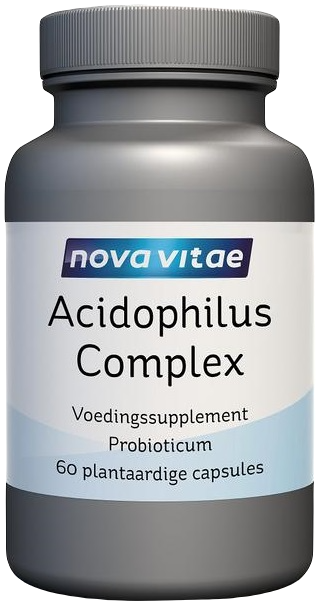 Nova Vitae Acidophilus Complex Capsules bevat 5 miljard kiemen per capsule, samengesteld uit gelijke delen: – Lactobacillus Salvarius- Lactobacillus Casei- Lactobacillus Acidophilus- Bifidobacterium Lactis- Lactocaccus Lactis Doseringals voedingssupplement 3 maal daags 1