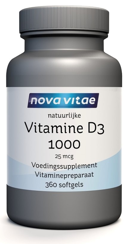 Nova Vitae Vitamine D3 1000IE Softgels bevatten hoogwaardige vitamine D3 dat goed opneembaar is door het lichaam. Vitamine D kan door de huid worden aangemaakt maar dit is voor velen toch wel lastig. Hiervoor moet u tussen 11.00 uur en 15.00 uur minstens 30 minuten buiten