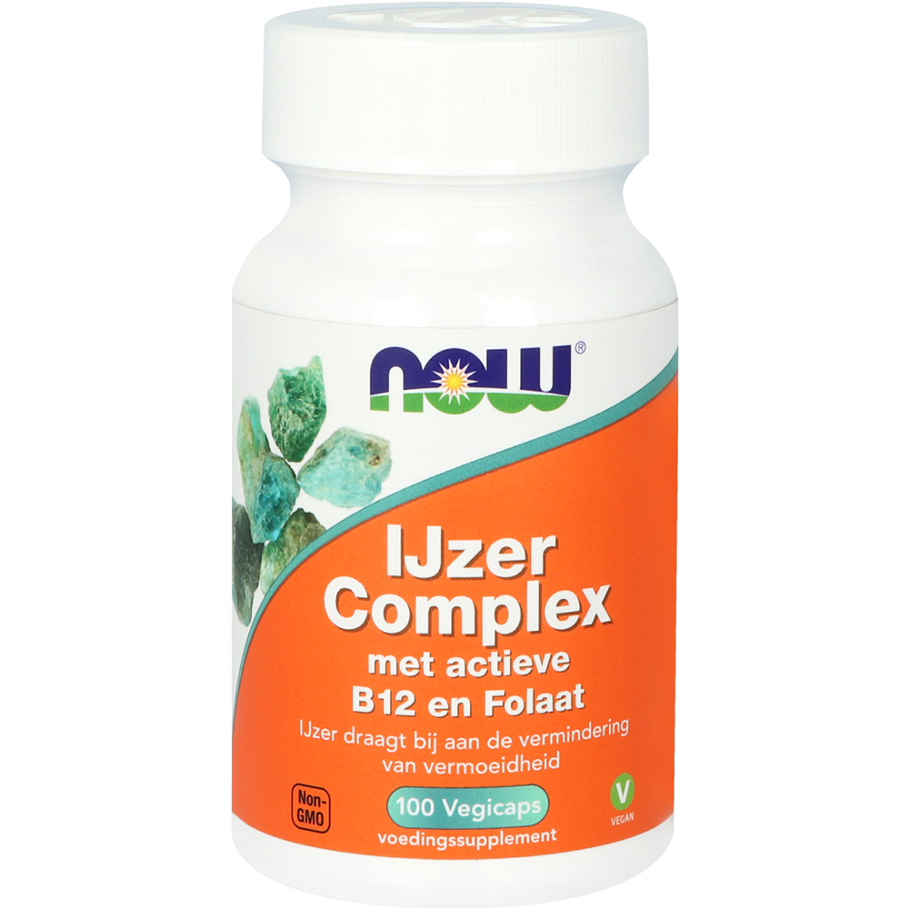NOW IJzer Complex met actieve B12 en Folaat Vegicaps is een voedingssupplement met uigebreide ijzerformule met Ferrochel®, een zeer goed opneembare en verdraagbare ijzerverbinding. Tevens bevat het de biologisch actieve vormen van foliumzuur (Quatrefolic®) en vitamine B12