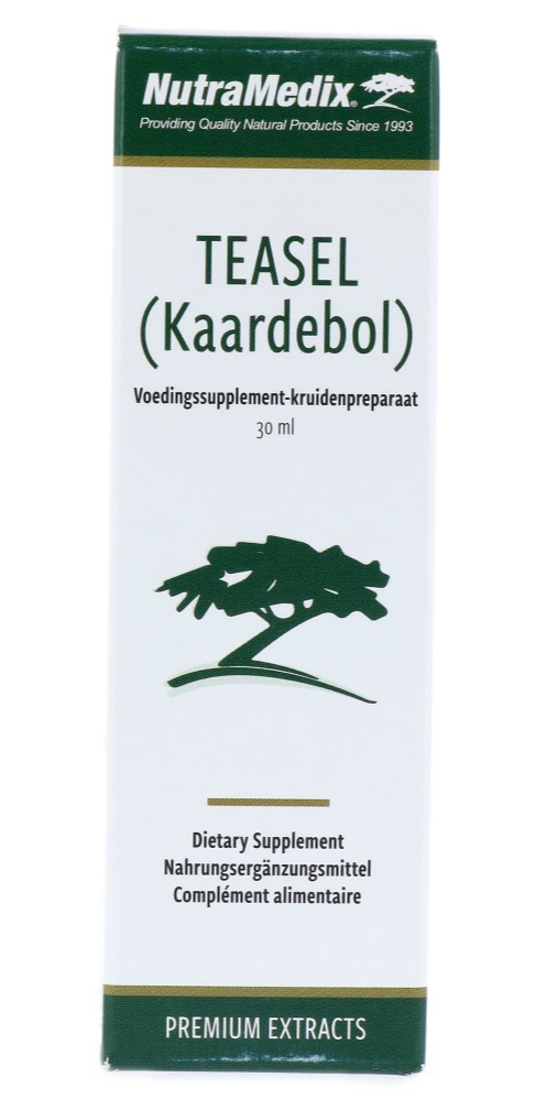 Nutramedix Kaardebol Teasel is een kruidenpreparaat met 60 mg extract mengsel van de Kaardebol (Dipsacus fullonum) per 60 druppels. Kaardebol behoort tot de kaardebolfamilie (Dipsacaceae, ook wel bekend als dipsacus) en is een bloeiende plant, met lange, cilindervormige
