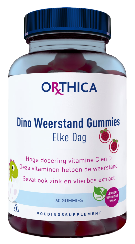 Orthica Dino Weerstand Gummies (60 stuks) bevatten een hoge dosering vitamine C en D. Daarnaast zijn de gummies verrijkt met zink en vlierbesextract. Met hun heerlijke frambozensmaak en kauwbare vorm zijn ze gemakkelijk in te nemen, ideaal voor kinderen die moeite hebben met