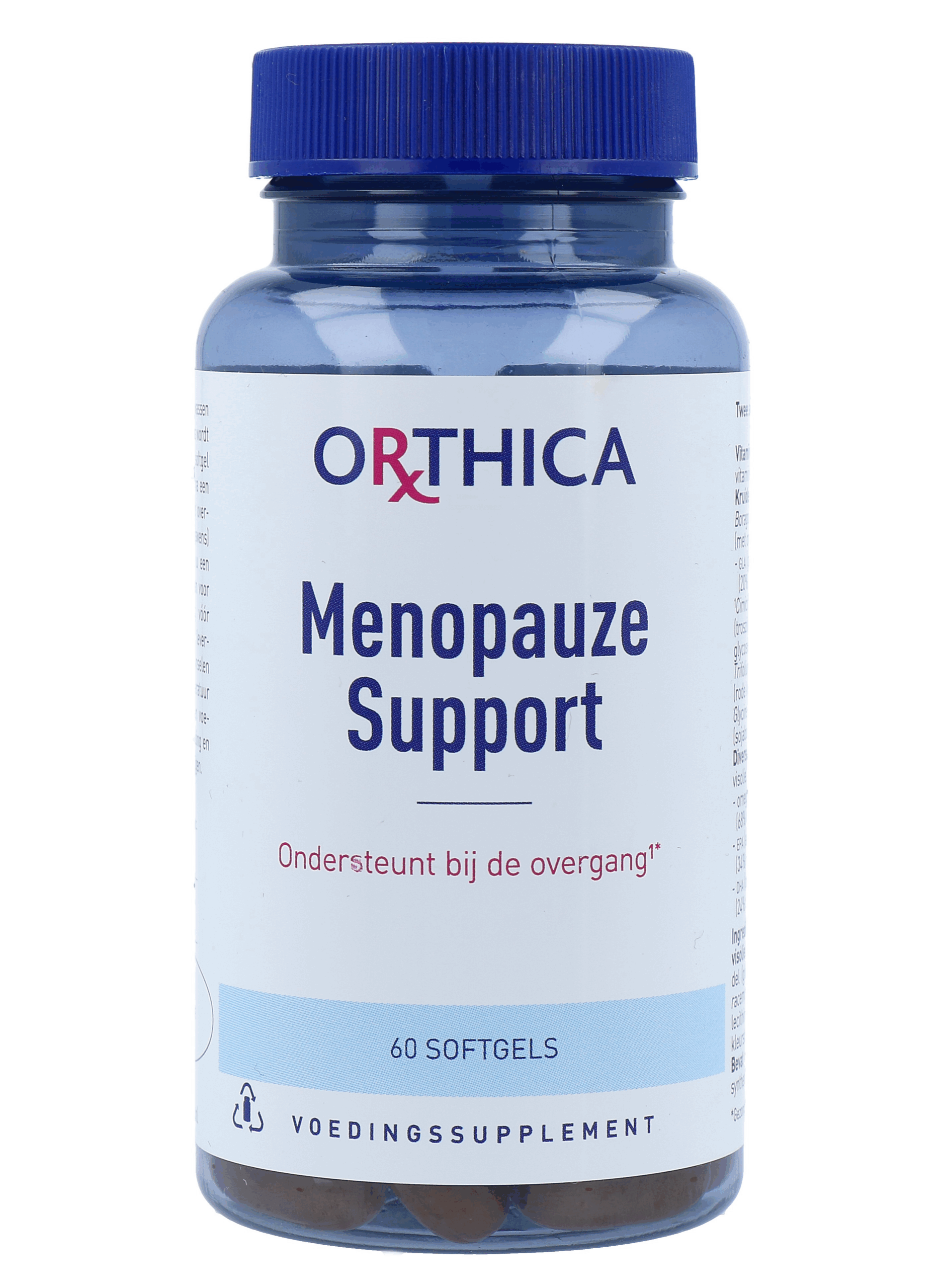 Orthica Menopauze Suport Softgels is een supplement die ondersteunt bij de overgang. Tijdens de overgang kan het voorkomen dat een vrouw hormoonschommelingen heeft en daardoor stemmingswisselingen en opvliegers krijgt. Een gezonde en gevarieerde voeding en voldoende slaap