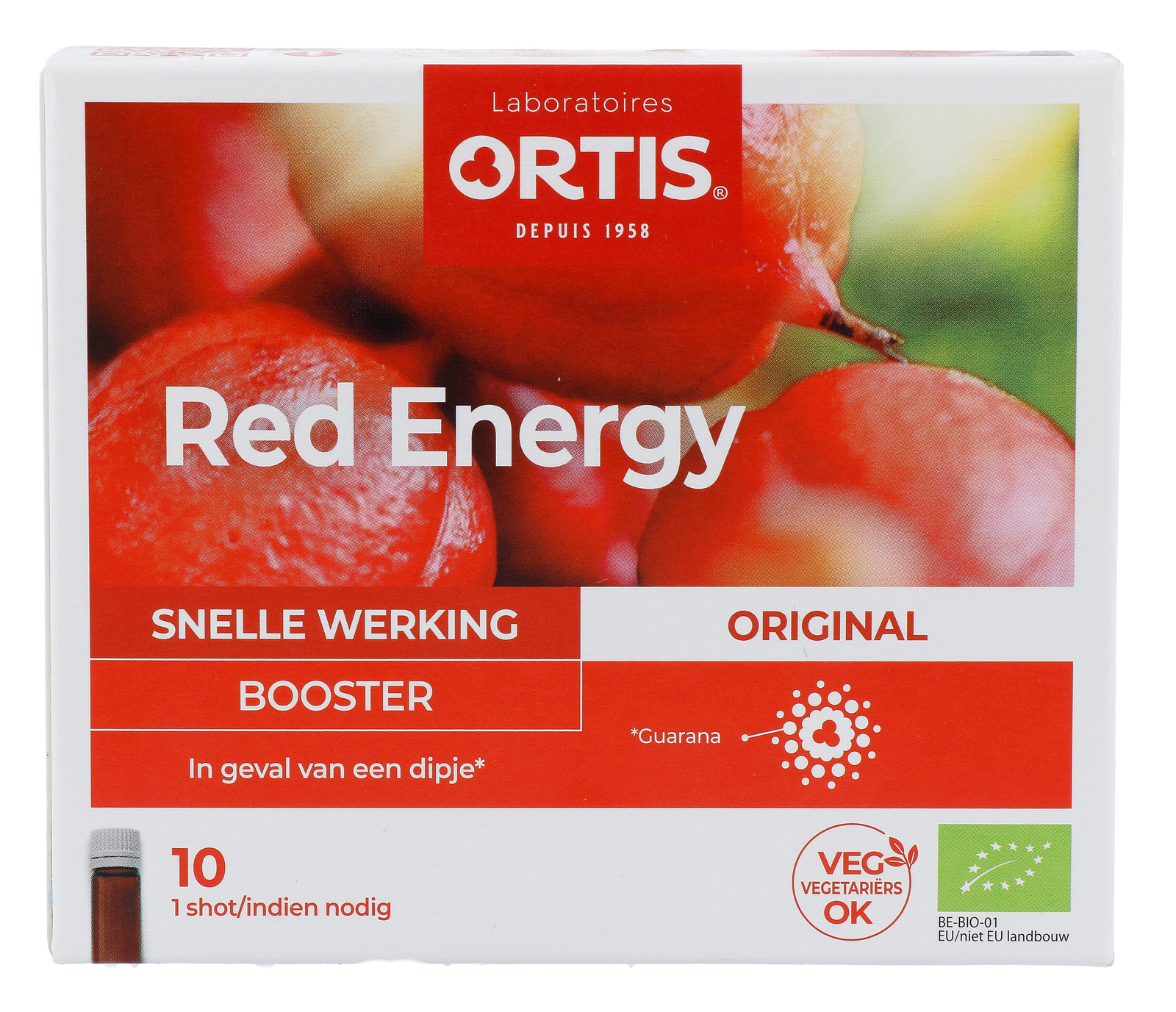 Ortis Red Energy Original Booster Bio op basis van guarana is ideaal voor sportievelingen, personen die 's nachts werken, studenten die zicht voorbereiden op hun examens, en voor iedereen die een avondje wil stappen. Ortis Red Energy Original Booster Bio bevat een