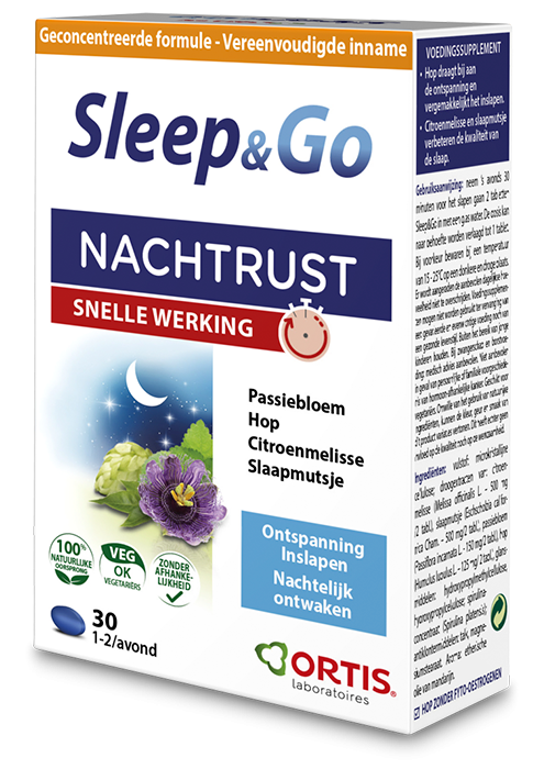 Ortis Sleep & Go Nachtrust Snelle Werking Tabletten is een kruidenpreparaat met citroenmelisse, slaapmutsje, hop en passiebloem. Deze combinatie bevordert de kwaliteit van slapen. Bovendien is de formule 100% van natuurlijke oorsprong. Zonder afhankelijkheid of