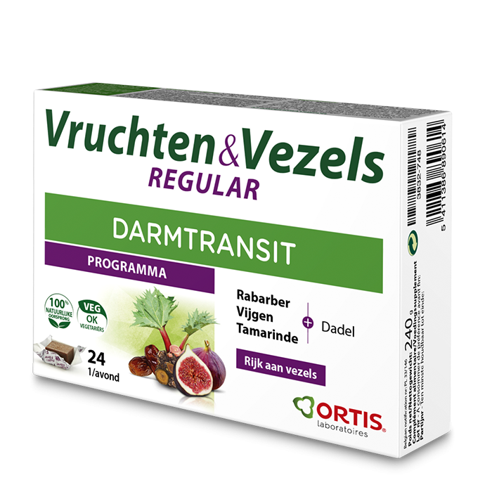 Ortis Vruchten & Vezels Regular Darmtransit Blokjes is een kruidenpreparaat met diverse plantenextracten met langdurige werking, indien een goede darmwerking voor langere tijd gewenst is. Rabarber reguleert de darmfunctie langdurig, dankzij een krachtig hydraterende werking