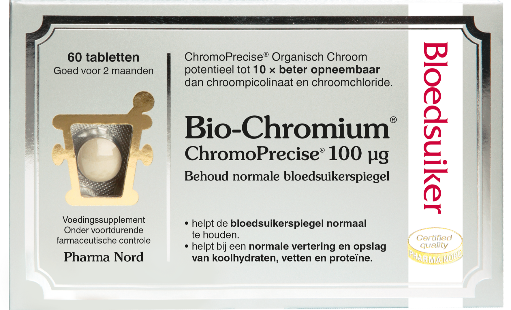 Pharma Nord Bio-Chromium Bloedsuiker Tabletten bevat een unieke soort chroom dat tot 10x beter opgenomen wordt. De in de EU toegelaten chroom soorten worden niet goed opgenomen in het lichaam. Er is 10 jaar gewerkt om deze officieel toegelaten te krijgen. Bio-Chromium