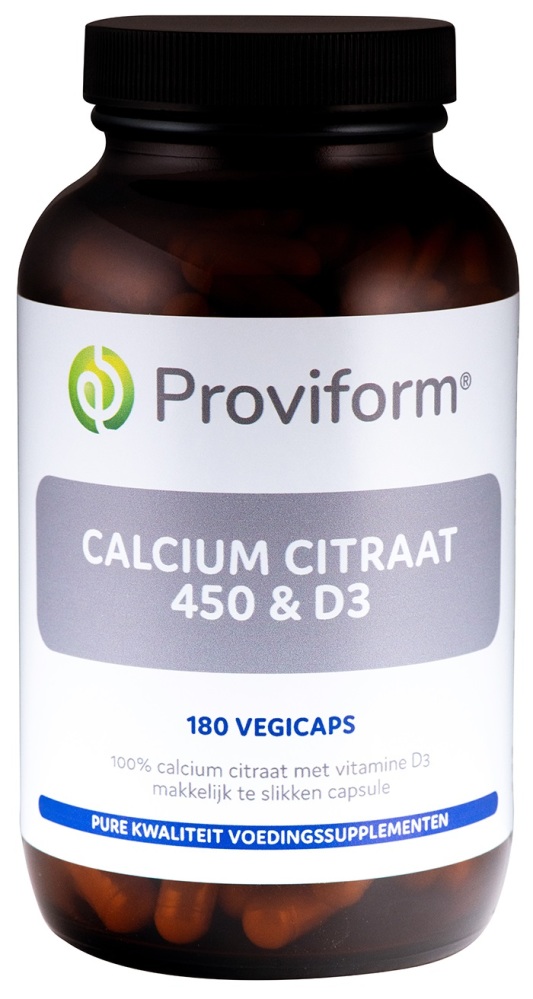 Proviform Calcium Citraat 450 & D3 Capsules bevat 5 mcg natuurlijke vitamine D3 per capsule voor een goede opname van calcium. Calciumcitraat in capsules wordt bijna niet gemaakt. De reden daarvoor is dat per 150 mg elementair calcium, zoals in de Proviform