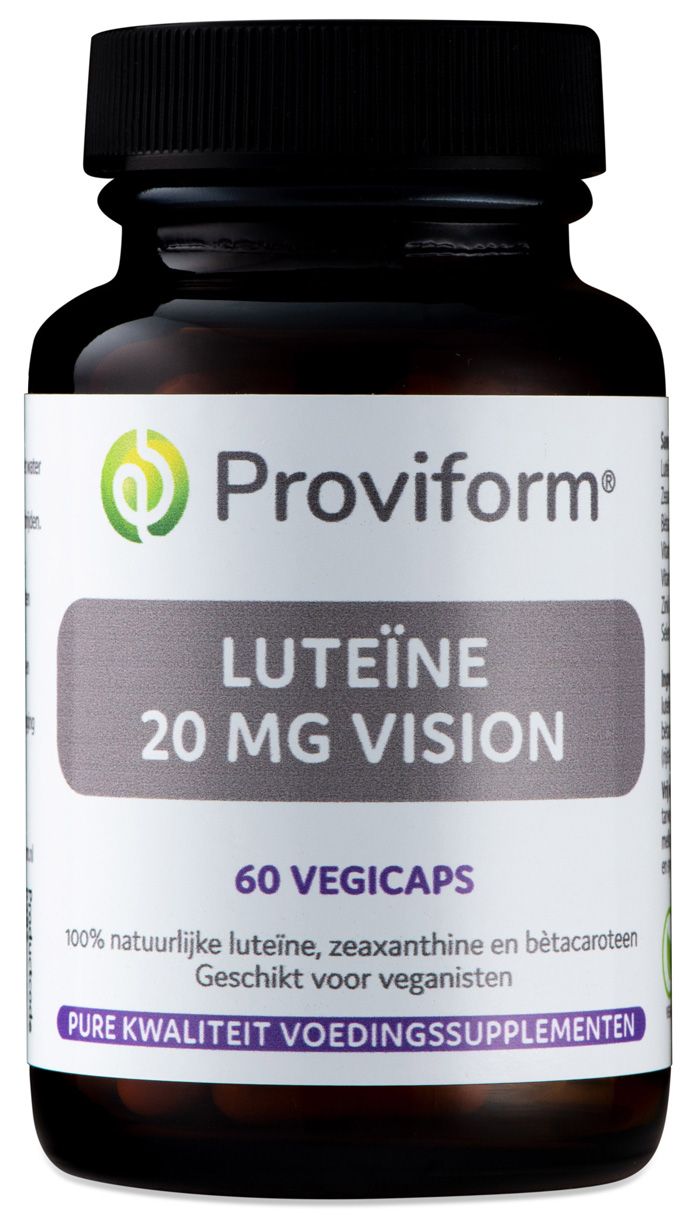 Proviform Luteïne 20mg Vision is een hoogwaardig voedingssupplement op basis van 100% natuurlijke Luteïne, Zeaxanthine en Bèta-caroteen (Pro-vitamine A). De hoge doseringen van deze antioxidanten dragen bij tot het behoud van een normaal gezichtsvermogen. Daarnaast bevat het