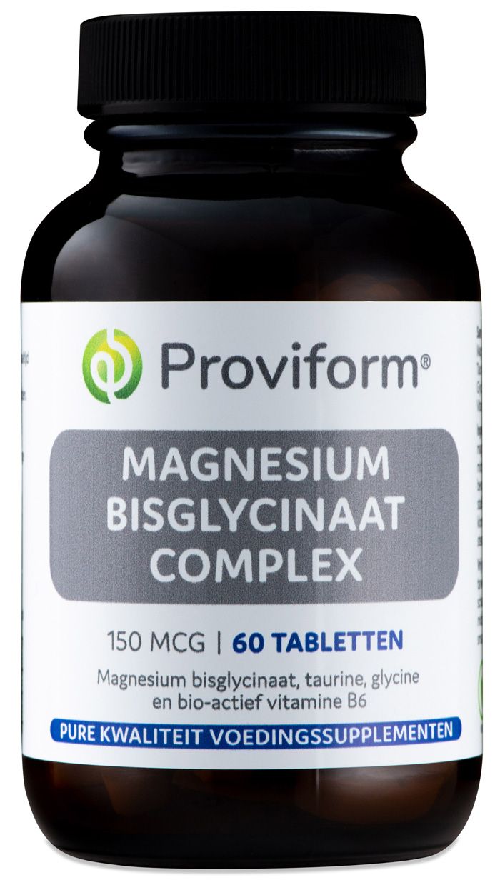 Proviform Magnesium Bisglycinaat Complex is een hoogwaardig voedingssupplement van pure kwaliteit op basis van 150mg magnesium. Er is gebruik gemaakt van de vorm bisglycinaat vanwege zijn hoge biologische beschikbaarheid. De vegetarische formule is naast het mineraal