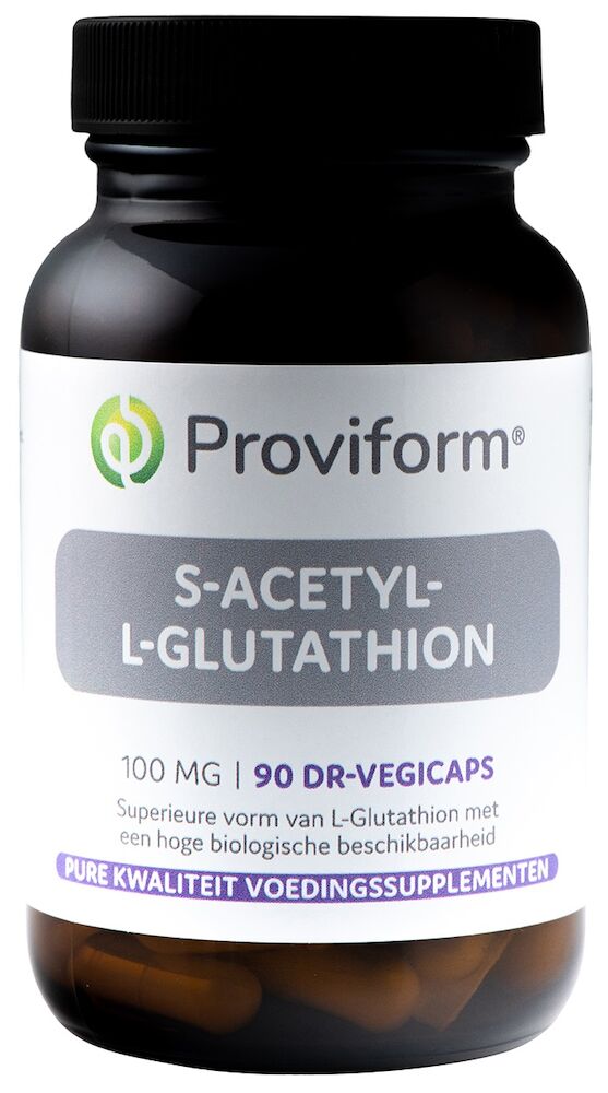 Proviform S-Acetyl-L-Glutathion Vegicaps onderscheidt zicht vanwege de hoge biologische beschikbaarheid ten opzichte van gereduceerd L-Glutathion. Glutathion wordt door het lichaam aangemaakt uit de aminozuren cysteïne, glutamine en glycine en is de belangrijkste
