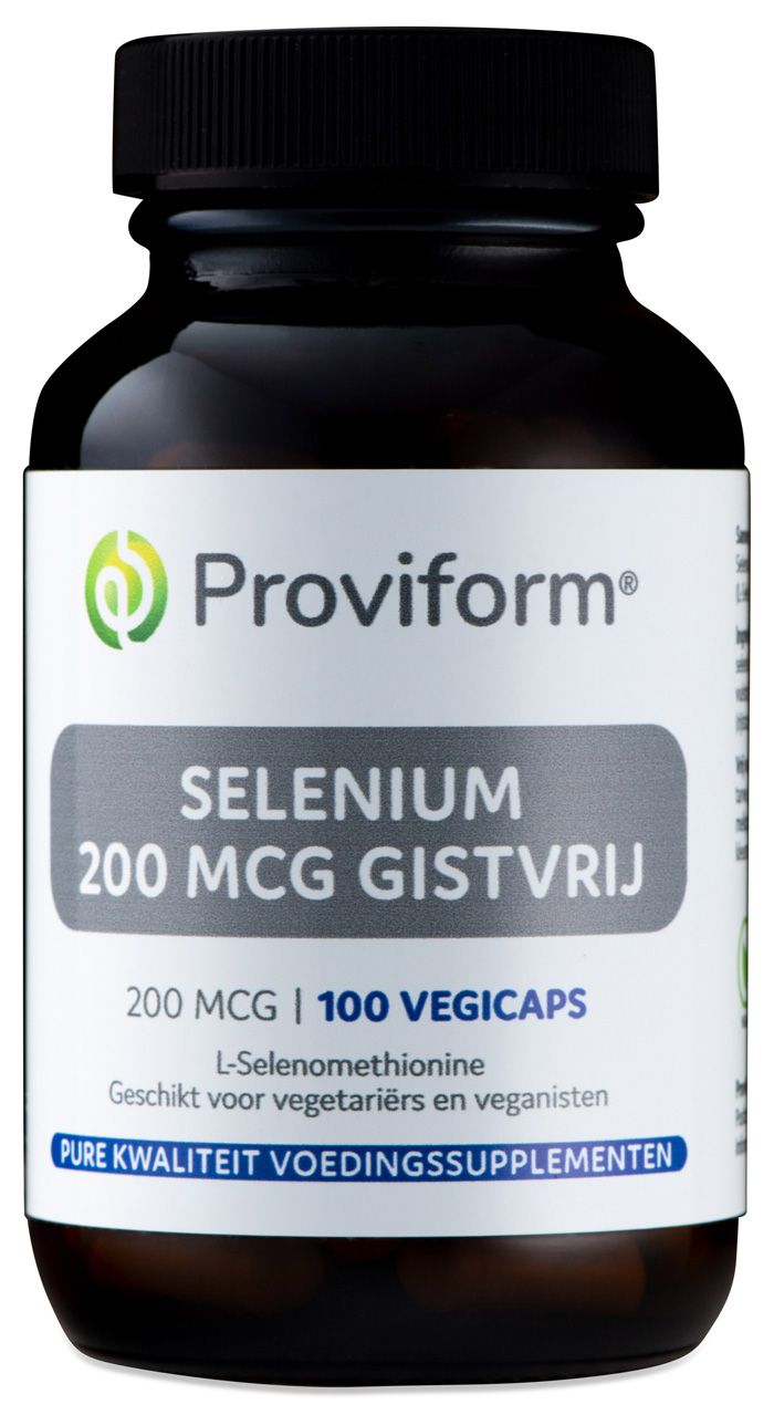 Proviform Selenium 200mcg Gistvrij bevat 200mcg l-Selenomethionine per capsule. L-Selenomethionine 200mg is een organisch gebonden vorm van selenium en helpt beschermen tegen invloeden van buitenaf zoals milieu vervuiling en zonlicht. Dosering1 capsule per dag met water
