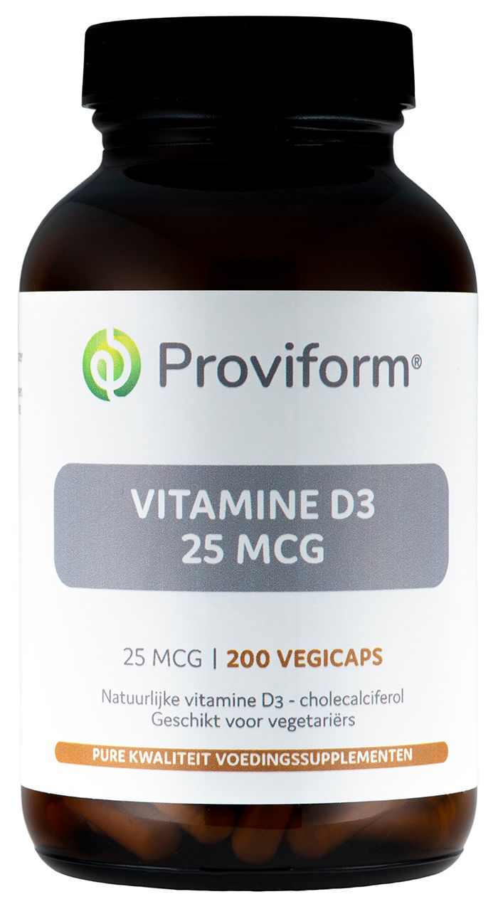 Proviform Vitamine D3 25mcg Vegicaps is een hoogwaardig vegetarisch voedingssupplement wat vitamine D3 bevat. Vitamine D kan gedeeltelijk door het lichaam zelf worden aangemaakt. Dit proces voltrekt zich in de huid onder invloed van ultraviolet licht. Er is op dit moment