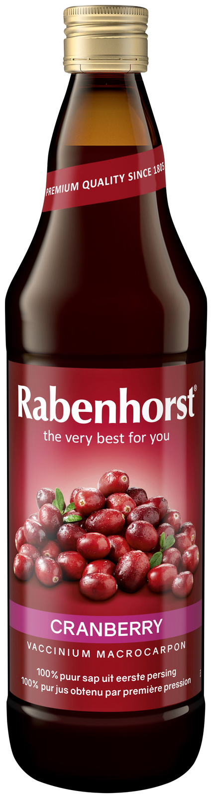 Rabenhorst Cranberrysap is een puur sap op basis van zorgvuldig geselecteerde cranberry's. Deze zachtzure, rode vruchten zijn afkomstig uit Noord-Amerika en worden na de oogst direct geperst. De cranberry's zijn van de eerste persing waardoor een heerlijk vol en puur sap