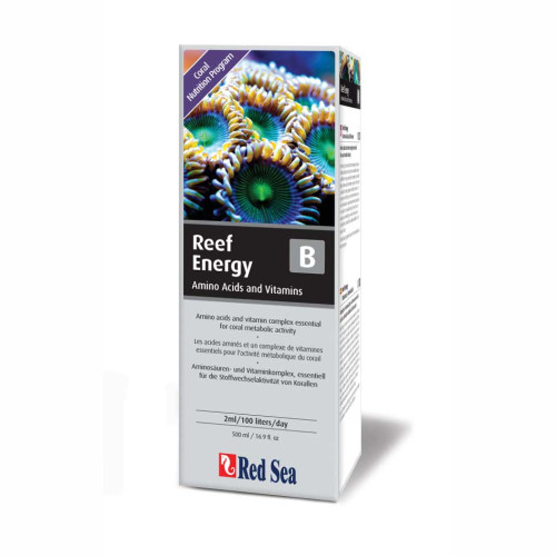 Reef Energy B is een sterk geconcentreerd complex van vitaminen en aminozuren die bleken te zijn de beperkende factoren in de voedingsbehoeften van koralen en andere waterdieren. Dit complex vult de exacte vitaminen en MAA (mariene aminozuren), geproduceerd door zoöxanthellen. Vitamines belangrijk voorlopers in de synthese van eiwitten chromo terwijl de aminozuren de bouwstenen. Alle componenten van Reef Energy B afkomstig uit mariene bronnen en worden geëmulgeerd in een uniek medium dat de oplosbaarheid en absorptie van de vitaminen en zuren verbetert de koralen