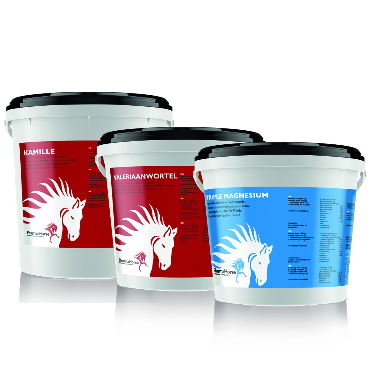 PharmaHorse Triple Magnesium bestaat uit drie organische Magnesiumbronnen: Magnesiumcitraat, Magnesiumlactaat en Magnesiummalaat. Magnesium draagt bij aan meerdere functies in het paardenlichaam. Zo heeft Magnesium een positieve invloed op de werking van het zenuwstelsel en is het mineraal goed voor de gemoedstoestand. Daarnaast is Magnesium goed voor het concentratievermogen en speelt het een rol bij het behouden van soepele spieren en voor het behoud van sterke botten.