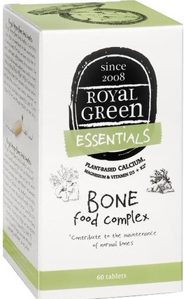 Royal Green Bone Food Complex Tabletten bevatten een complex van vitaminen en mineralen, waaronder calcium en magnesium die een bijdrage leveren aan het behoud van sterke botten. Hiervoor wordt gezorgd door het complex van plantaardige calcium en magnesium, dat wordt