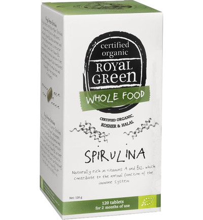 Royal Green Spirulina Tabletten is een supplement met spirulina. Deze spiraalvormige alg is rijk aan vitaminen en mineralen. De Spirulina van Royal Green bevat meer dan 60 actieve stoffen, onder andere vitamine B12, Béta-caroteen en eiwitten.Bèta-caroteen is een voorloper