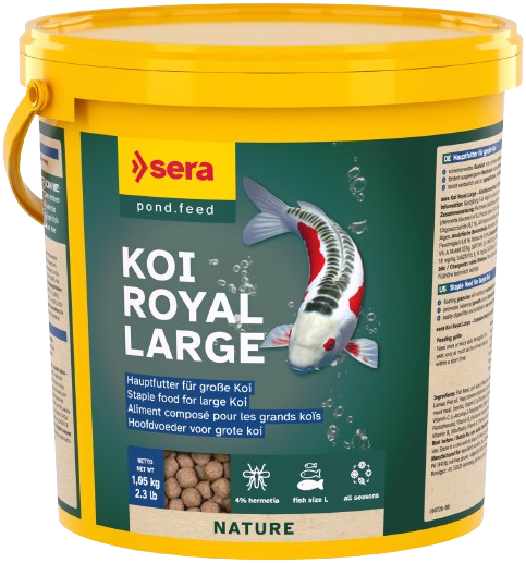 De Sera Koi Royal Large – 3800 ml is speciaal ontwikkeld voor grote koi, met een uitgebalanceerde samenstelling die zorgt voor gezonde groei, sterke weerstand en optimale ontwikkeling. Het voer bestaat uit drijvende, bijzonder vormstabiele granulaatkorrels, die licht verteerbaar zijn dankzij een uitgebalanceerde koolhydraten-proteïne-verhouding. Het bevat waardevolle ingrediënten zoals omega-vetzuren, mannan-oligosacchariden, en 4% insectenmeel van duurzame kweek. Dit zorgt voor een optimale energievoorziening, een sterke gezondheid en een stralende vitaliteit bij je koi, het hele jaar door, zonder kleur- en conserveermiddelen.