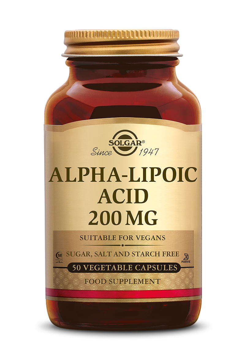 Solgar Alpha Lipoic Acid (Liponzuur) 200 mg Capsules (50 stuks) is een natuurlijk zwavelhoudend bestanddeel van diverse voedingsmiddelen. Het kan ook door het lichaam worden aangemaakt. Deze capsules bevatten alfaliponzuur, ook wel thioctinezuur genoemd, in een goed