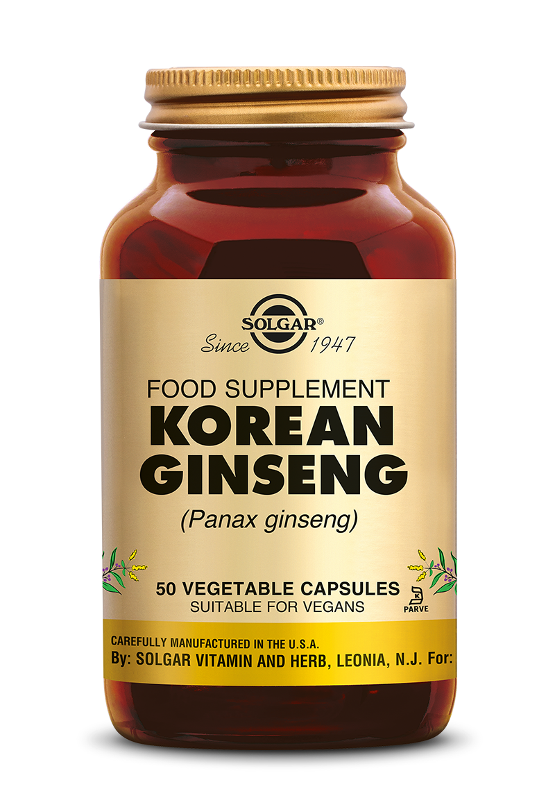 Solgar Ginseng Korean Capsules (50 stuks) bevat een unieke combinatie van 500 mg gedroogd Koreaans ginsengwortelpoeder en 20 mg geconcentreerd ginsengwortelextract per capsule. Koreaanse ginseng (Panax ginseng) wordt al duizenden jaren traditioneel gebruikt in de Oosterse