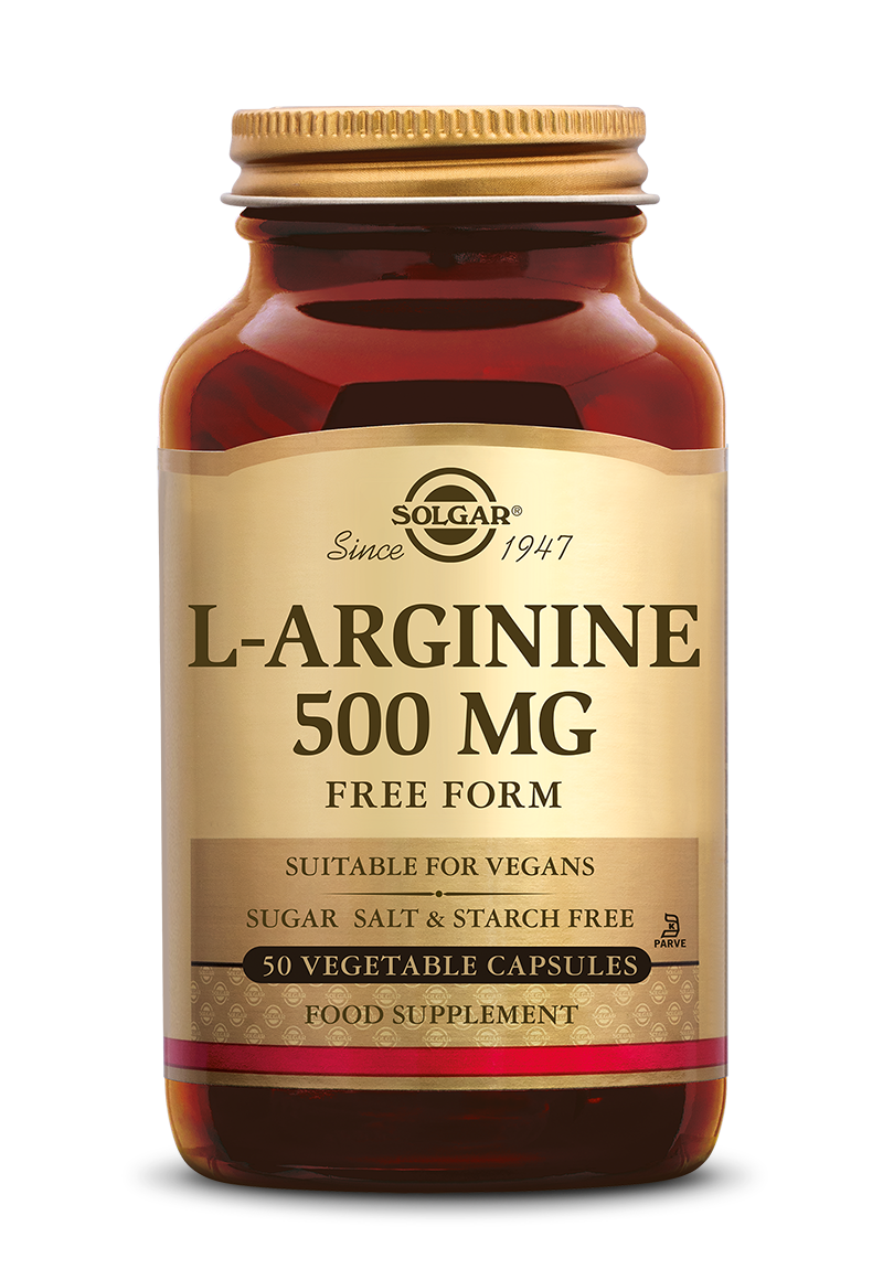 Solgar L-Arginine 500 mg capsules (50 stuks) bevatten een vrije-vorm aminozuur dat vooral wordt gebruikt door sporters. Deze capsules leveren 500 mg L-arginine per dagdosering in een goed opneembare vrije vorm. De donkere glazen verpakking biedt optimale bescherming tegen