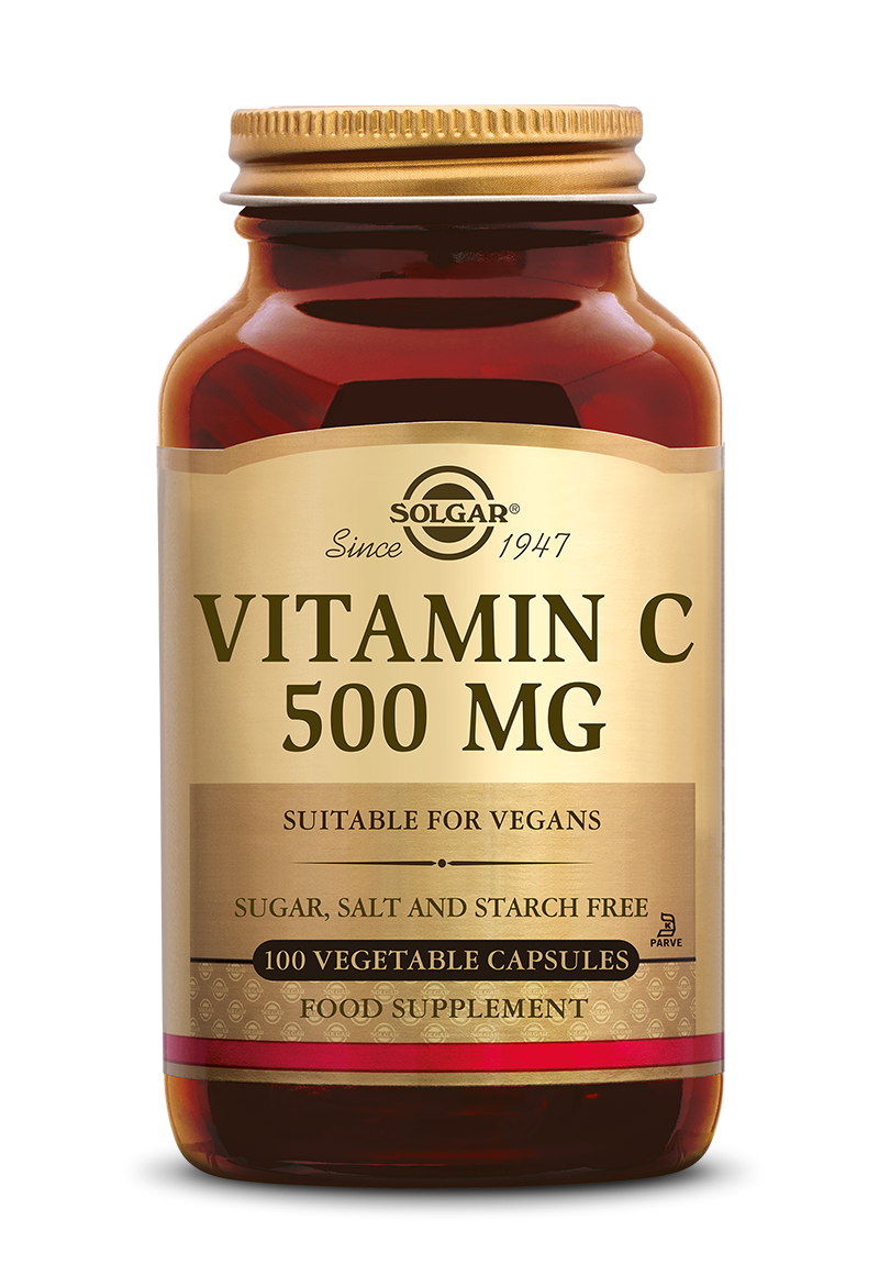 Solgar Vitamine C 500 mg Capsules (100 stuks) zijn een voedingssupplement met vitamine C in de vorm van L-ascorbinezuur. Elke Capsule bevat 500 mg vitamine C, wat overeenkomt met 625% van de referentie-inname. De donkere glazen verpakking biedt optimale bescherming tegen