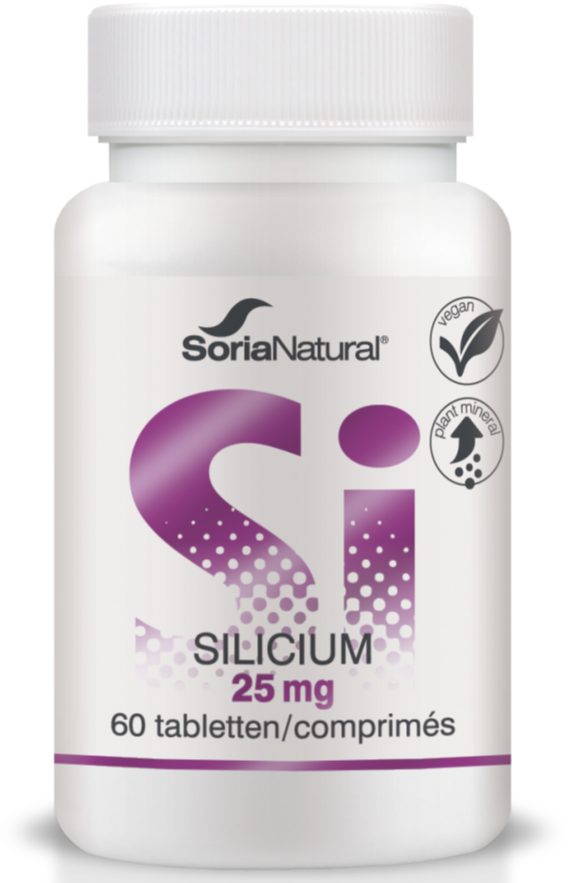 Soria Natural Silicium 25mg Tabletten (60 stuks) is een vegan voedingssupplement op basis van Silicium uit droog extract van bamboe (Bambusa arundinacea).Soria Natural Silicium 25mg Tabletten:Hoogwaardig voedingssupplement met 25mg silicium per tabletVeganistische formule,