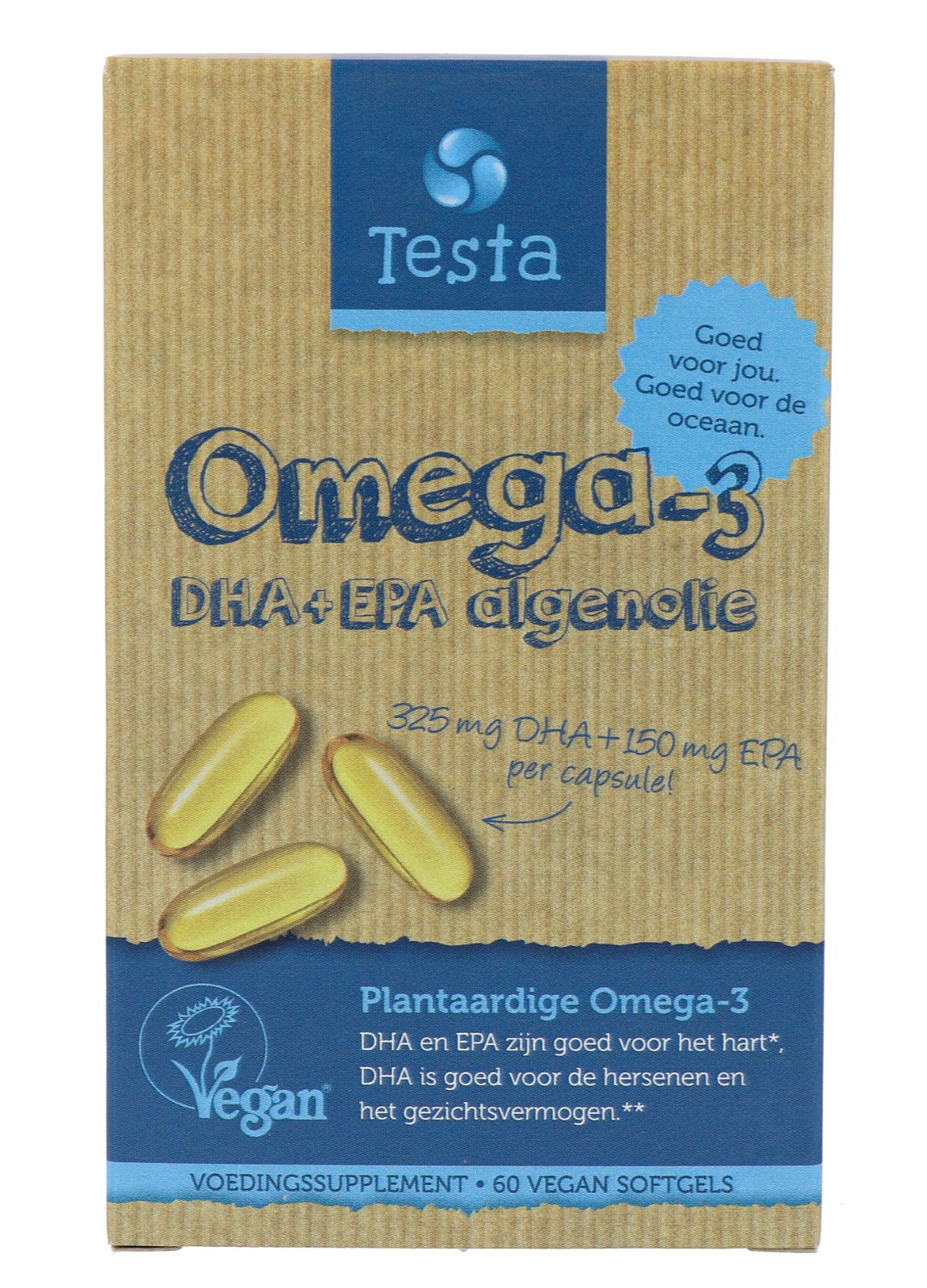 Testa Omega-3 Algenolie DHA & EPA Softgels is een hoogwaardig 100% plantaardig omega-3 supplement op basis van algenolie en rijk aan DHA en EPA. De softgels zijn gemaakt van zeewierextract in plaats van gelatine. Bovendien maakt Testa geen gebruik van genetisch