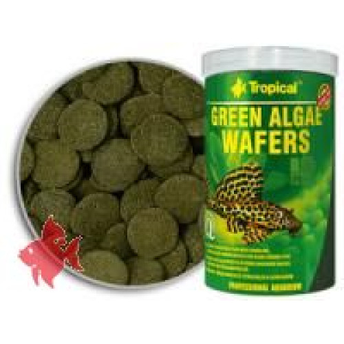 Een plantaardig voedsel in de vorm van zinkende wafers voor de vis van de Cichlidae familie.
