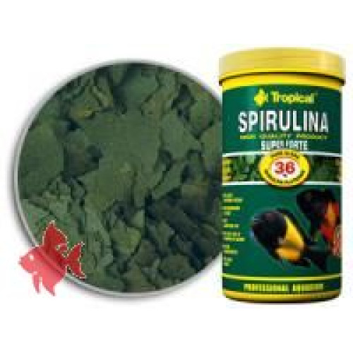 Super Spirulina Forte is een vlokvoer met een hoog gehalte (36%) van Spirulina platensis (alg).