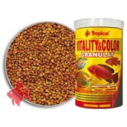 Vitality color Granulaat is een zeer voedzaam, kleurversterkende granulaatvoer voor alle aquariumvissen.
