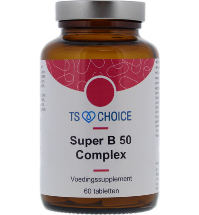 TS Choice Super Vitamine B50 Complex functioneert in het lichaam als een hechte groep. Ze zijn onder andere essentieel voor het vrijmaken van energie uit voeding en voor de vet en eiwitstofwisseling. De groep draagt bij tot het behoud van een gezonde huid, haar, ogen, mond