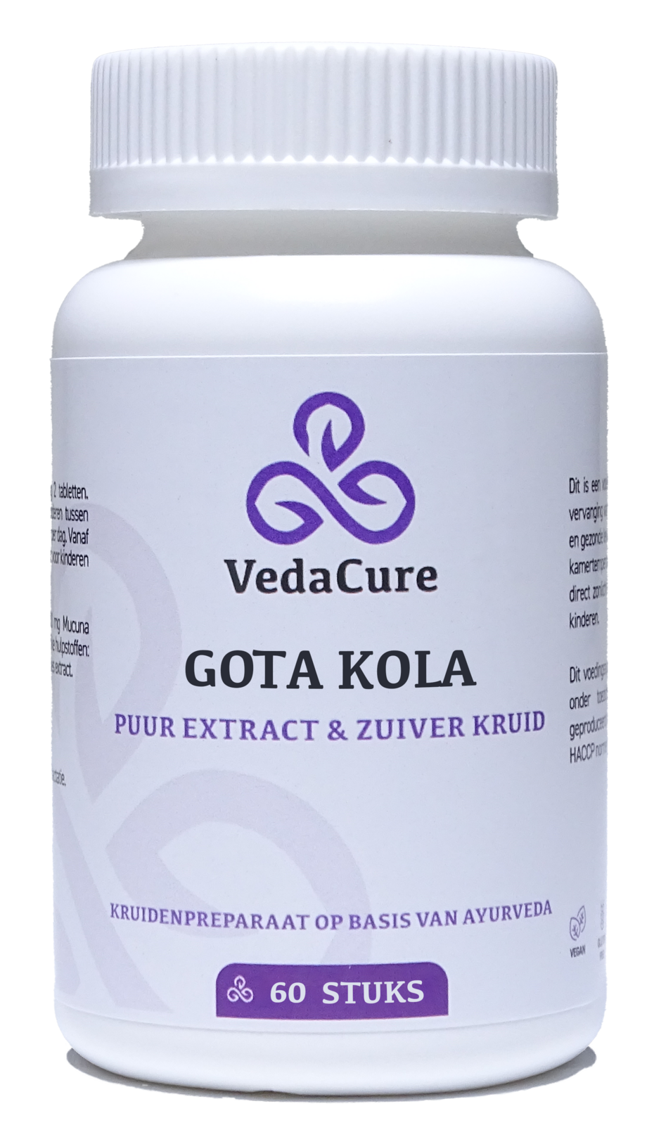 VedaCure Gota Kola Tabletten (60 stuks) is een voedingssupplement. De tabletten bevat 20% Asiaticoside een extract van maar liefst de verhouding 12: 1 van Gotu Kola worden de stengels en bladeren geoogst. Hij kan het gehele jaar door geplukt worden. De belangrijkste actieve