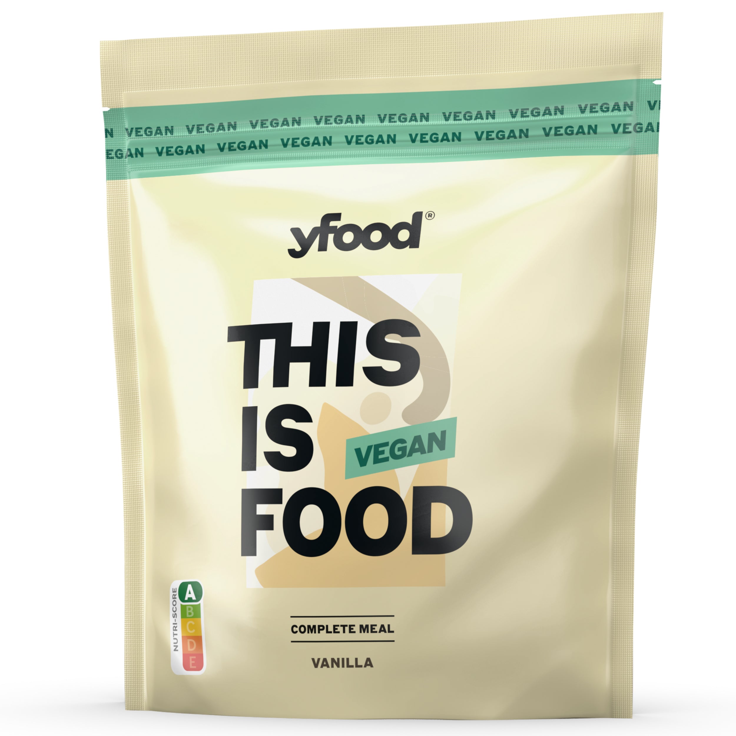 yfood maaltijdvervangende Vegan Vanilla poeder | Een zak van 1 kg bevat 12 volledige maaltijden | Een powder maaltijd is rijk aan alle voedingsstoffen die je lichaam nodig heeft: veel proteïne, vezels en 26 vitaminen en mineralen | De complete maaltijd in de vorm van een powder is de lekkerste op de markt en gebruikt alleen natuurlijke smaken | yfood powder is lactose- en glutenvrij en bevat geen soja of noten | Een portie yfood powder bevat 400 kcal | Ideaal om je gewicht te behouden en als proteïneshake voor tijdens of na het sporten en spiertraining | yfood: gebalanceerd, betaalbaar en een heerlijk alternatief voor ongezond junkfood.
