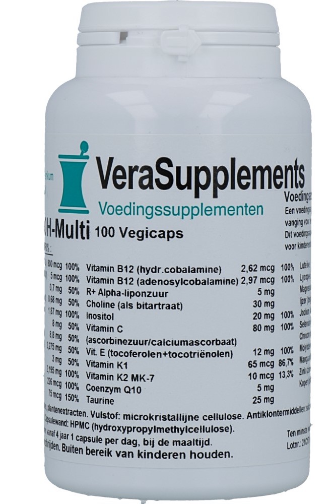 VeraSupplements ADH-Multi Capsules is een complete, breed samengestelde multivitamine afgestemd op de Aanbevolen Dagelijkse Hoeveelheid (ADH, recentelijk ook wel Referentie-Inname genaamd). Geschikt voor wie een hoogwaardige, maar niet hooggedoseerde multi wil innemen. Naast