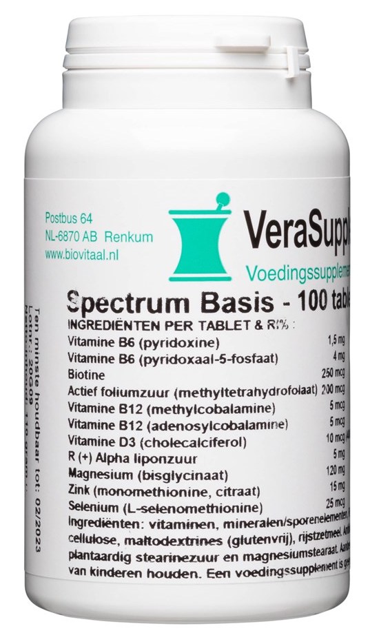 De VeraSupplements Spectrum Basis Tabletten bevatten een breed complex van verschillende belangrijke vitaminen, mineralen en enzymen. Hierdoor hebben ze een brede werking op het lichaam en dragen ze onder meer bij tot een normale werking van het zenuwstelsel en een normale