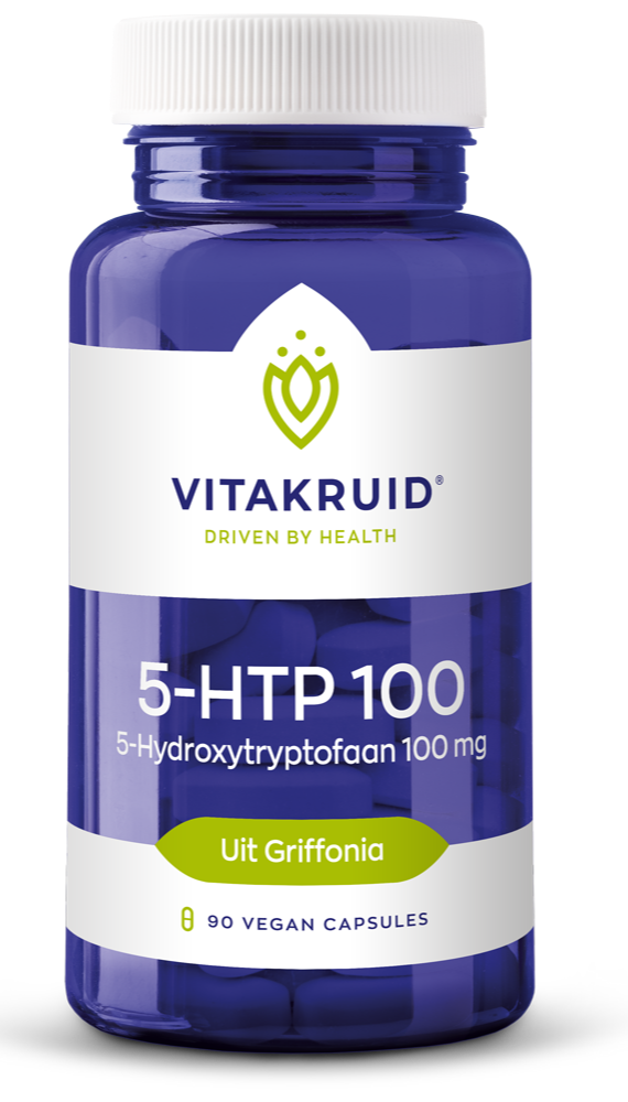 Vitakruid 5-HTP 100mg is een vegan voedingssupplement met een hoge dosering van het actieve bestanddeel 5-Hydroxytryptofaan (5-HTP), een essentieel aminozuur. 5-HTP is eigenlijk een al omgezette vorm van tryptofaan en komt makkelijk langs de hersenbloedbarrière. Dit