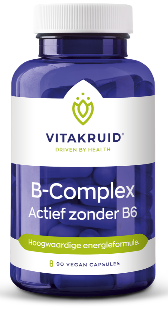 Vitakruid B-Complex Actief zonder B6 Vega Capsules (90 stuks) is het eerste vitamine B-complex zonder vitamine B6 om stapeling te voorkomen. Daarnaast bevat dit complex Quatrefolic® dat een superieure biologische beschikbaarheid heeft in vergelijking met synthetische vormen